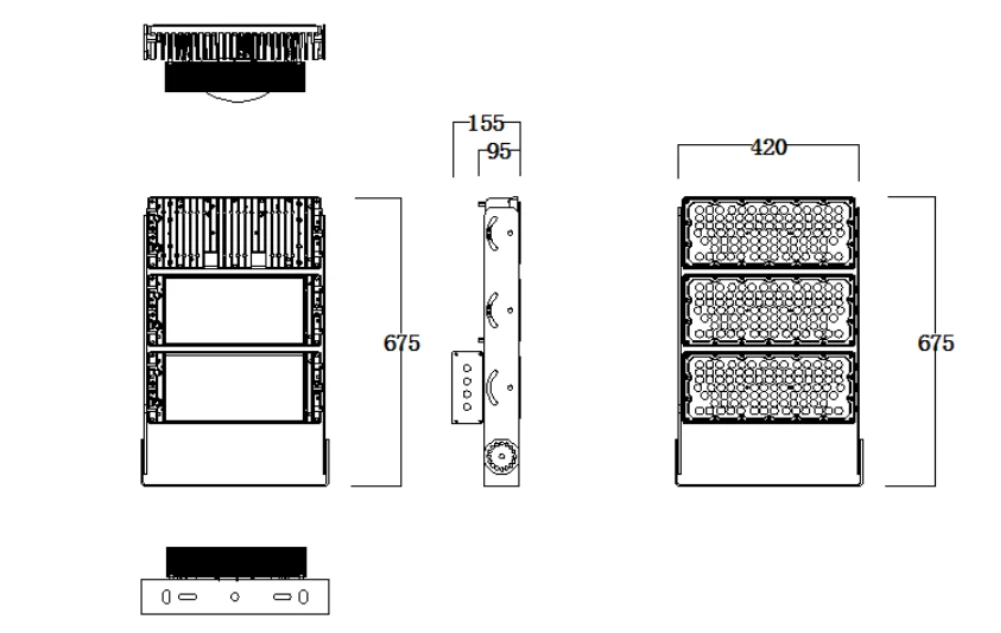 The 750W Three-Module LED Stadium Light is designed to deliver superior performance for large venues like sports fields, stadiums, and outdoor arenas. Offering an impressive 97,500 lumens, this modular light ensures even and ultra-bright illumination. With its IP66 waterproof rating and advanced heat dissipation, this light is built to perform in any weather condition. Perfect for professional-grade sports lighting and outdoor events.